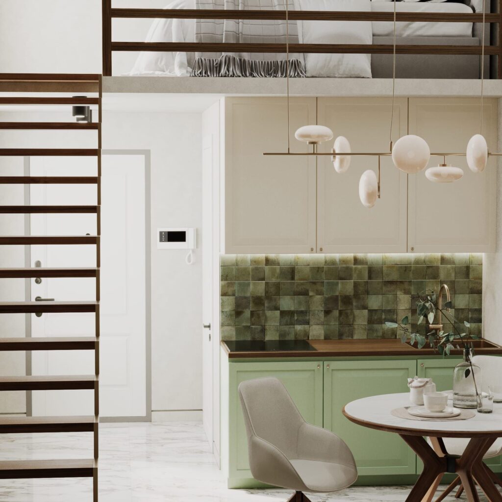 Современные апартаменты — это эргономичные планировки, которые позволяют разместить всё необходимое: зону для сна, хранения, работы и отдыха.